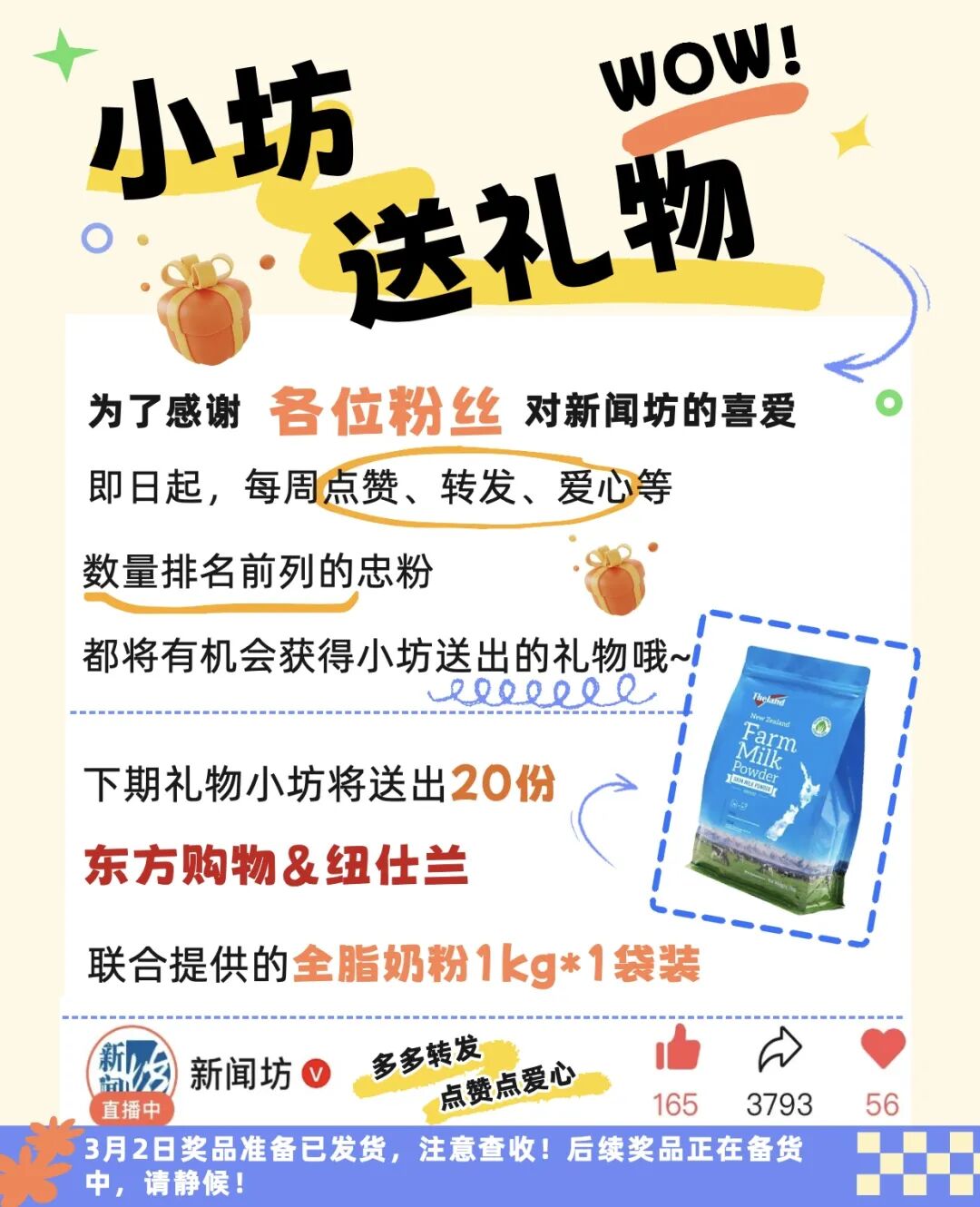 有机会获小坊送出的礼品
